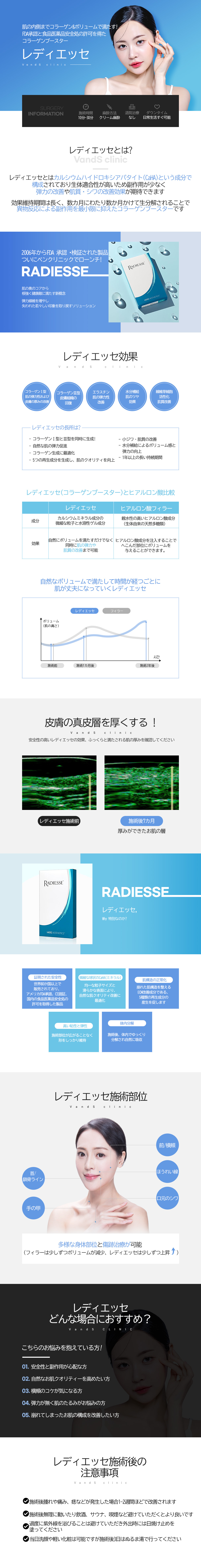 レディエッセは、炎症反応によってコラーゲンを生成するのではなく、 体内の線維芽細胞を刺激することで真皮層を強化します。